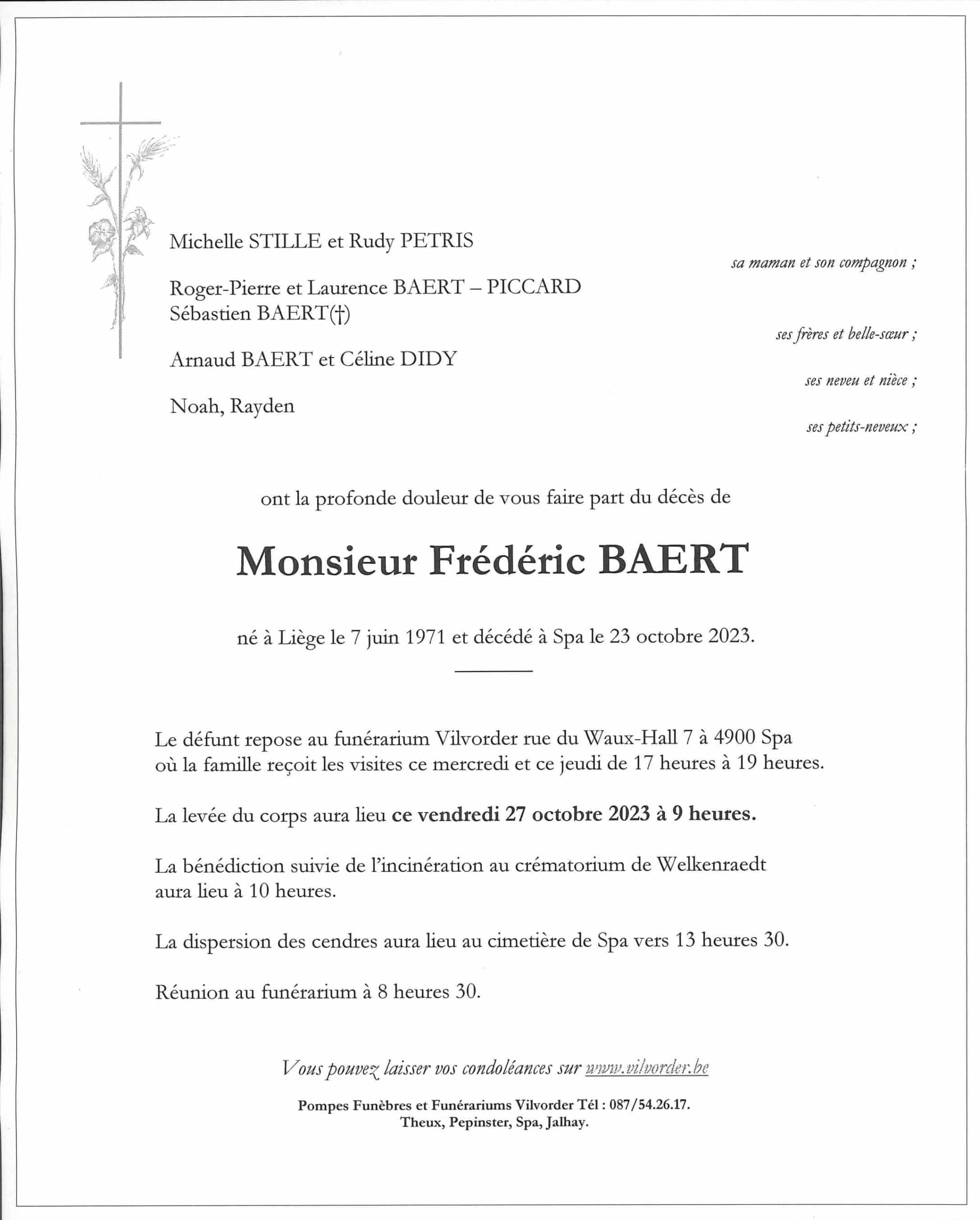 Domicilié(e) à Spa Né(e) le 7/06/1971 à Liège Décédé(e) le 23/10/2023 à Spa