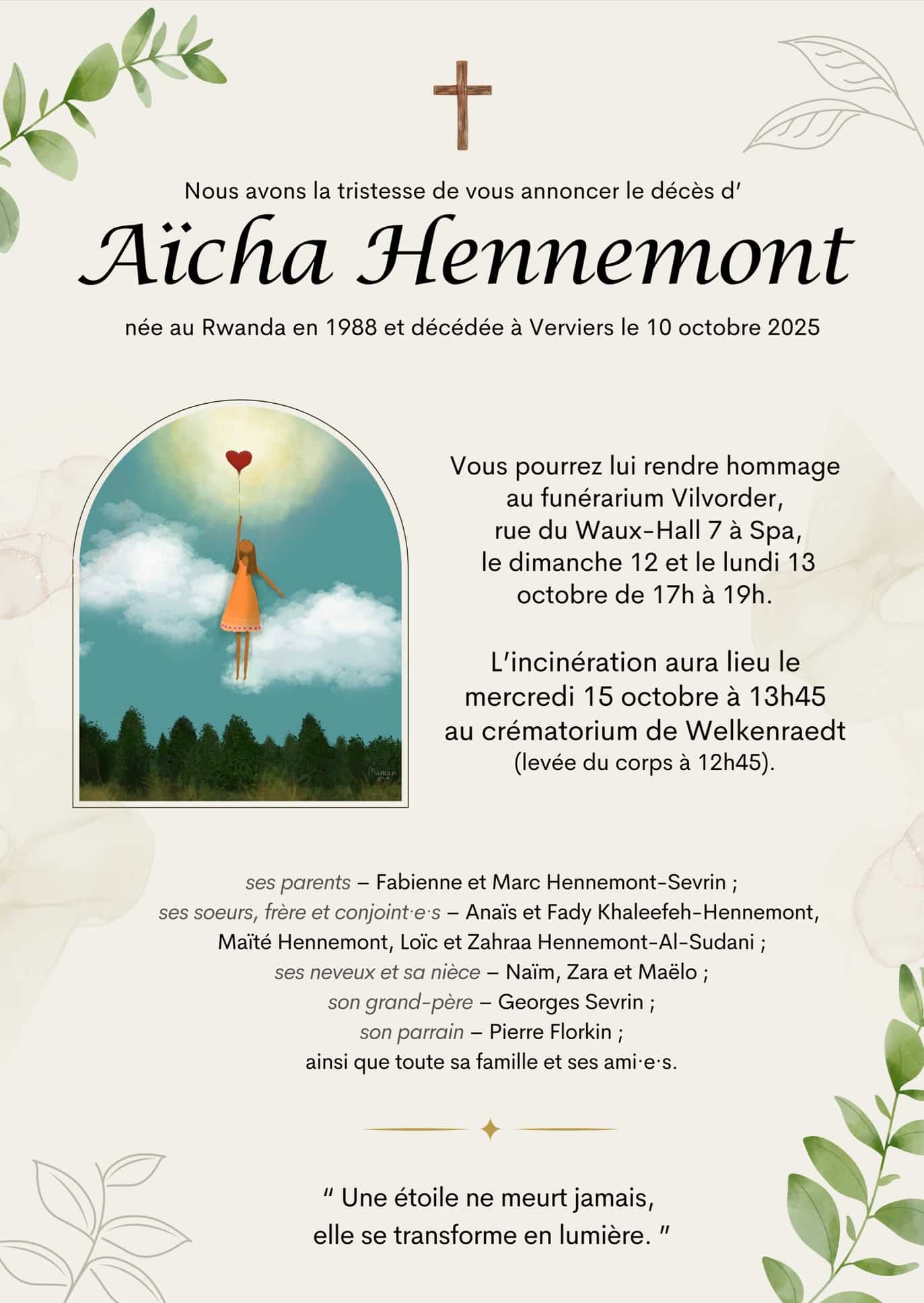 Domicilié(e) à Spa Né(e) le 1988 à Rwanda Décédé(e) le 10/10/2025 à Verviers