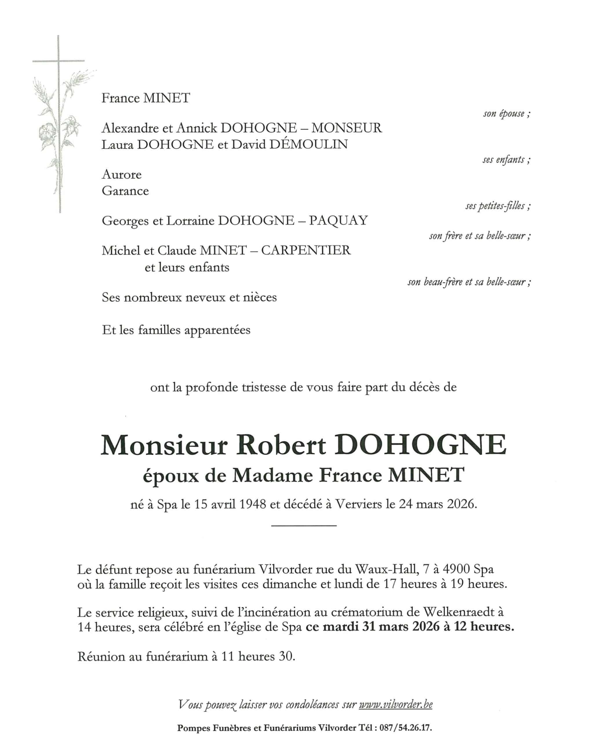 Domicilié(e) à Spa Né(e) le 15/04/1948 à Spa Décédé(e) le 24/03/2026 à Verviers